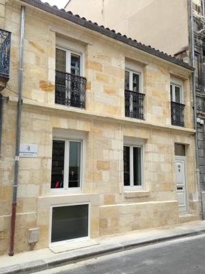 ravalment d'une echoppe double a bégles. repiquage, etats des lieux, remplacement des pierres et bouchons, retaille des moulures, habillage des coffres de volets roulant, changement des appuis de fenêtres,de la marche d'entrée, habillage des tableaux, plaquages type ancien des poteaux et du muret...