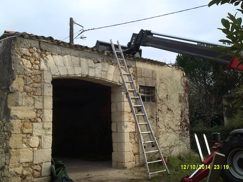 charpente enlevé, travail à la main pour éviter trop de vibration et remettre en valeur l'ouvrage enduit au ciment