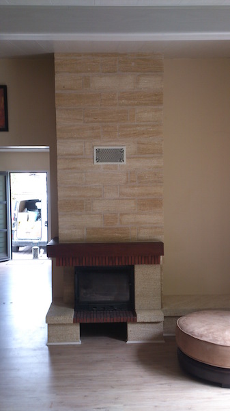 mise en place d'un foyer fermé avec habillage en briquette ancienne