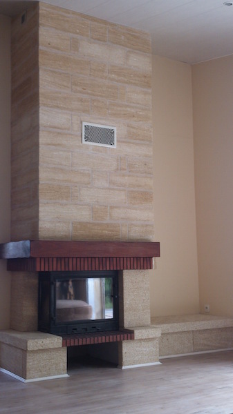 habillage en pierre du gard d,un conduit de cheminée en placo-platre